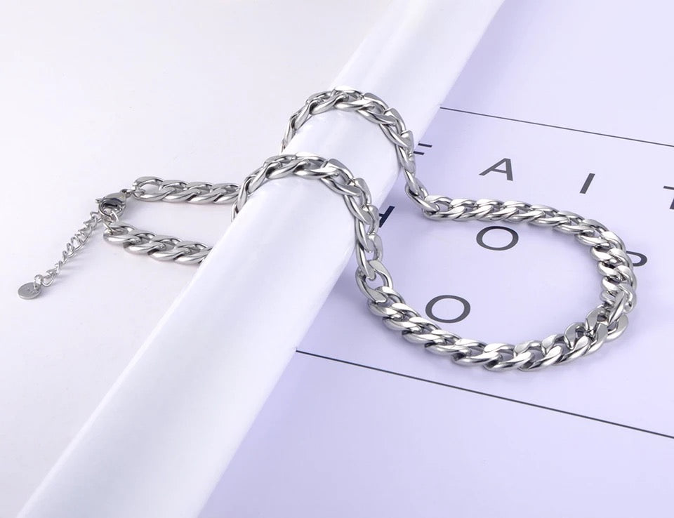 Stainless steel necklace comes in a rose gold, gold and silver colour. It is made of a thick chain with big links. Due to its thickness it is a statement necklace that do not need any additional accessory around your neck. The necklace is perfect for daily and night outfits. It has lobster clasp.
