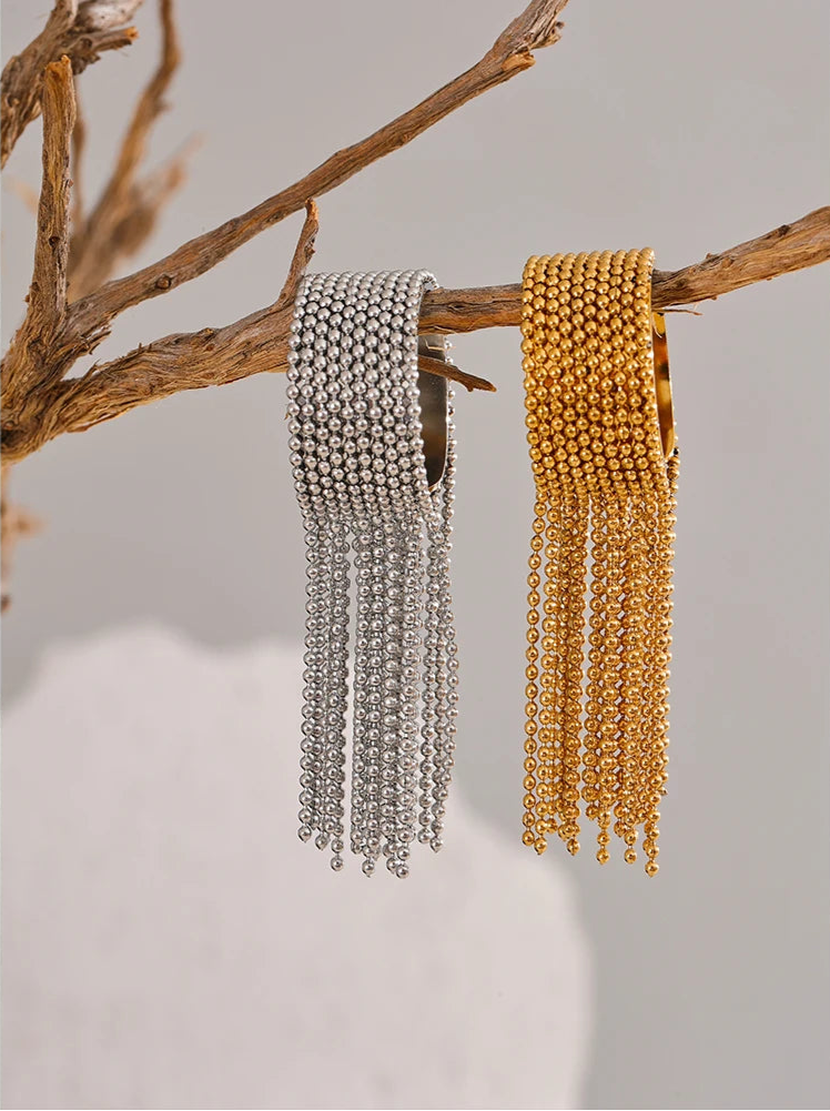 Make a bold statement with this stainless steel chain tassel finger ring, featuring an eye-catching adjustable design in both gold and silver 18K plated finishes. Crafted from high-quality stainless steel, this stylish ring combines elegance with modern charm. The delicate chain tassel detail adds a unique touch, making it a perfect accessory for any fashion-forward jewelry lover. Ideal for both casual and special occasions!