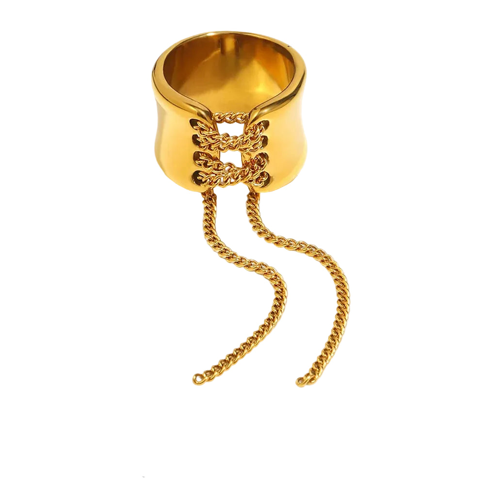 NIAMH - Tassel Wrapped Stainless Steel Ring for Women - Gold-Plated Trendy Daily Jewelry